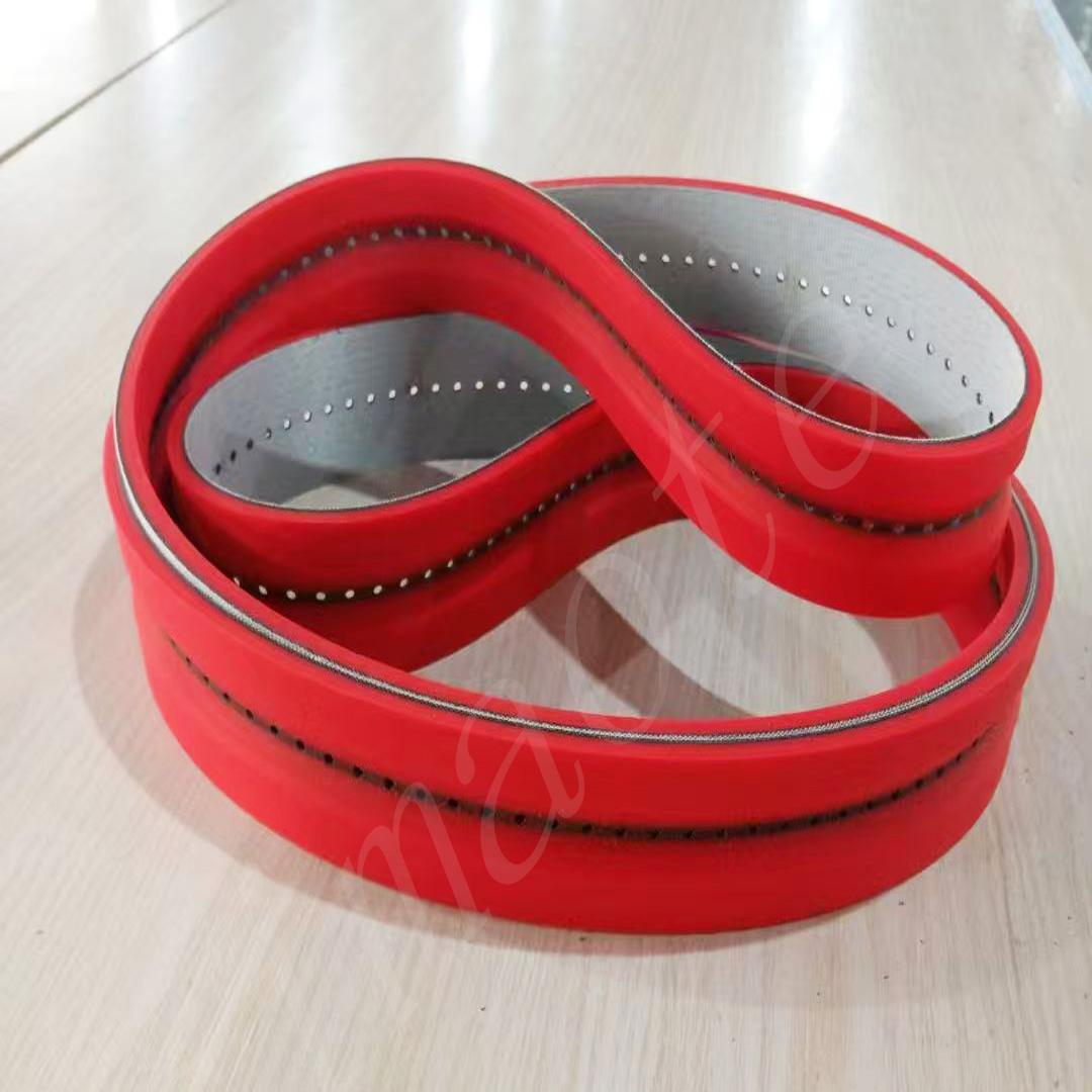橡膠同步帶傳動是由一根內周表面設有等間距齒形的環(huán)行帶及具有相應吻合的輪所組成。它綜合了帶傳動、鏈傳動和齒輪傳動各自的優(yōu)點。轉動時,通過帶齒與輪的齒槽相嚙合來傳遞動力。 傳輸龍同步帶傳動具有準確的傳動比,無滑差,可獲得恒定的速比,傳動平穩(wěn),能吸振,噪音小,傳動比范圍大,一般可達1:10。允許線速度可達50M/S,傳遞功率從幾瓦到百千瓦。傳動效率高,一般可達98%,結構緊湊,適宜于多軸傳動,不需潤滑,無污染,因此可在不允許有污染和工作環(huán)境較為惡劣的場所下正常工作。 傳輸產品廣泛用于紡織、機床、煙草、通訊電纜、輕工、化工、冶金、儀表儀器、食品、礦山、石油、汽車等各行業(yè)各種類型的機械傳動中。橡膠同步帶的特點 		   (1)傳動準確,工作時無滑動,具有恒定的傳動比;  (2)傳動平穩(wěn),具有緩沖、減振能力,噪聲低;  (3)傳動效率高,可達0.98,節(jié)能效果明顯;  (4)維護保養(yǎng)方便,不需潤滑,維護費用低;  (5)速比范圍大,一般可達10,線速度可達50m/s,具有較大的功率傳遞范圍,可達幾瓦到幾百千瓦;  (6)可用于長距離傳動,中心距可達10m以上。橡膠同步帶傳動的主要失效形式  ①帶體疲勞斷裂;   ②帶齒剪斷和壓潰;   ③帶側、帶齒磨損、包布剝離;   ④承載層伸長、節(jié)距增大、形成齒的干涉、爬齒;  ⑤沖擊、過載使帶體斷裂。